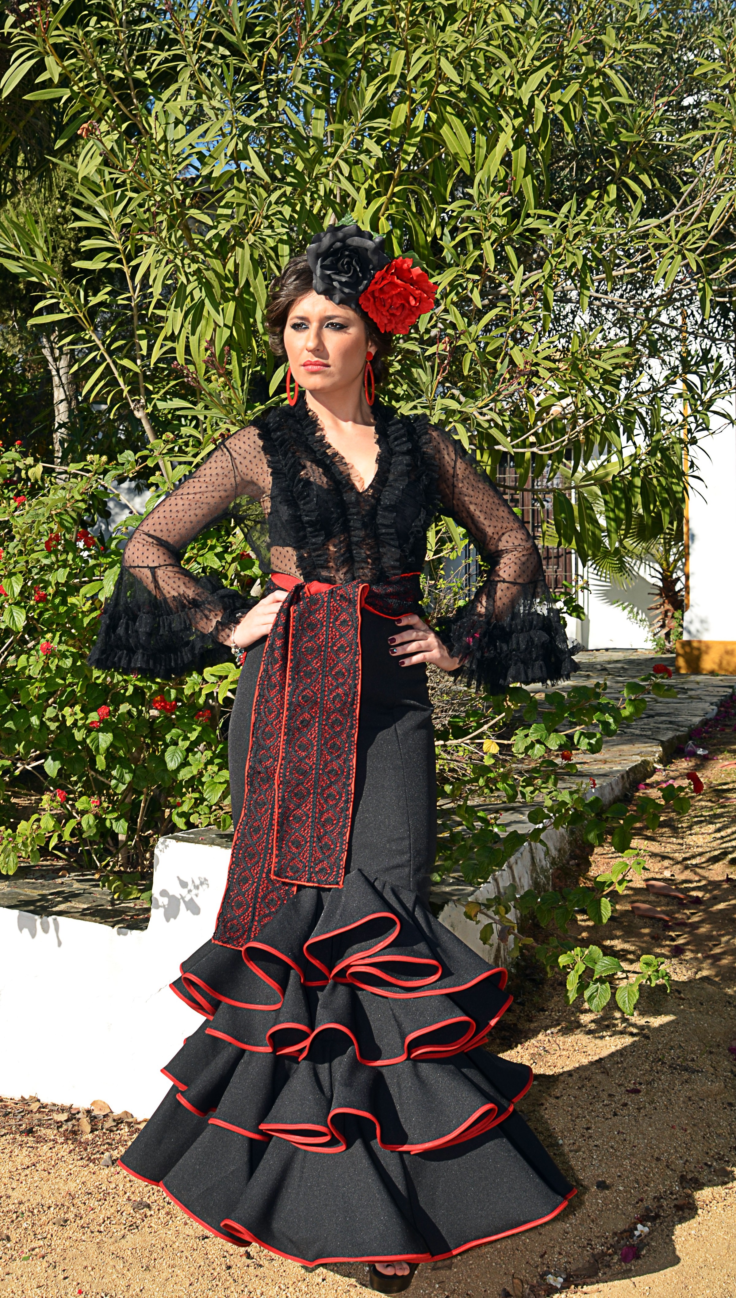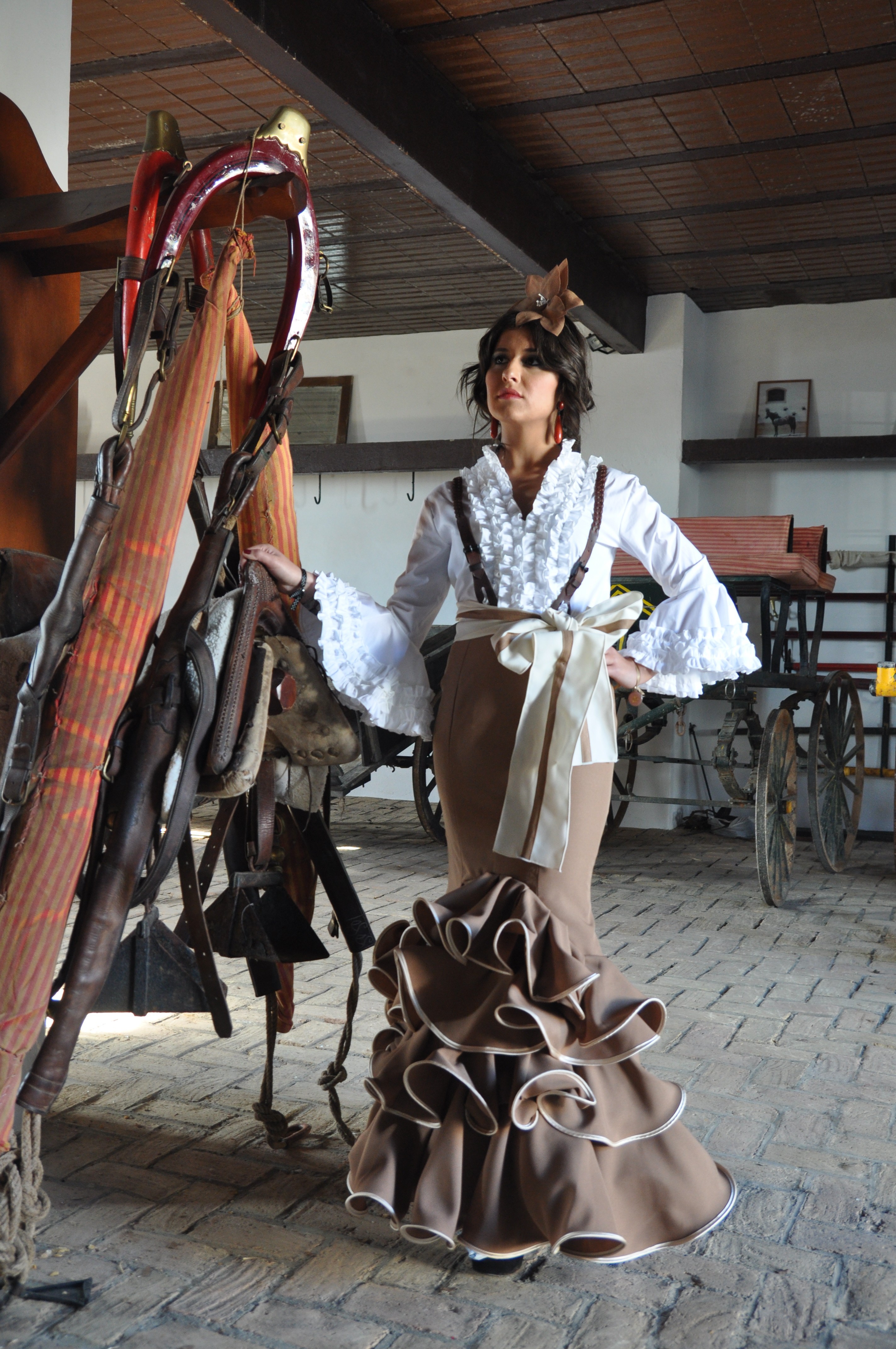 FALDA ROMERO, ENTERIZA CON TRES VOLANTES Y UNA CUÑA, VIVEADA CON CORDON, HECHA EN TEJIDO DE STRECH, LARGO SRA DE 105CM.