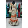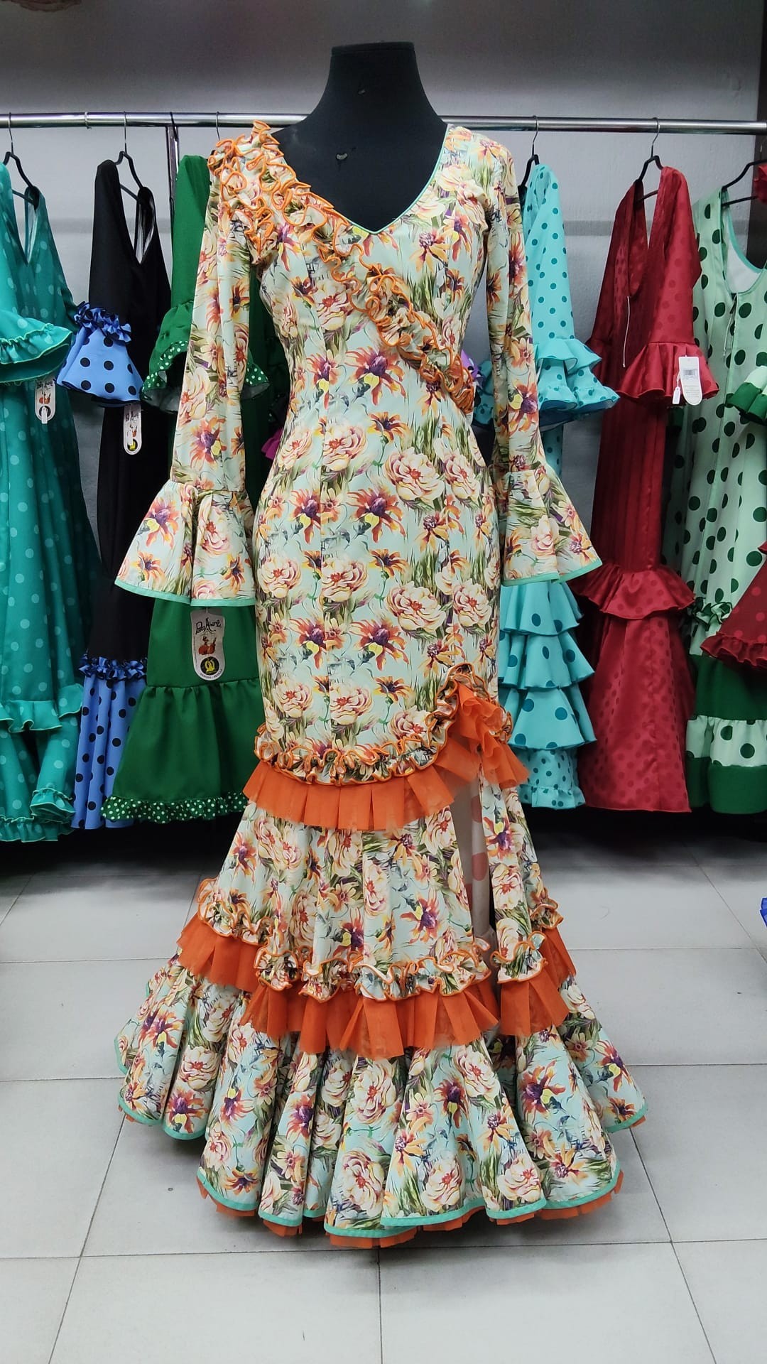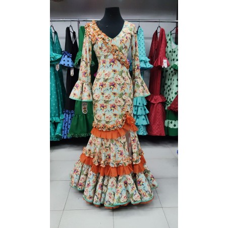TRAJE CORTADO AL TALLE, TEJIDO POPELIN SUAVE, LLEVA VOLANTES Y MANGA AL CODO,  ESCOTE DELANTERO DE HOJA Y TRASERO REDONDO A MEDIA ESPALDA, ENTREGA INMEDIATA.