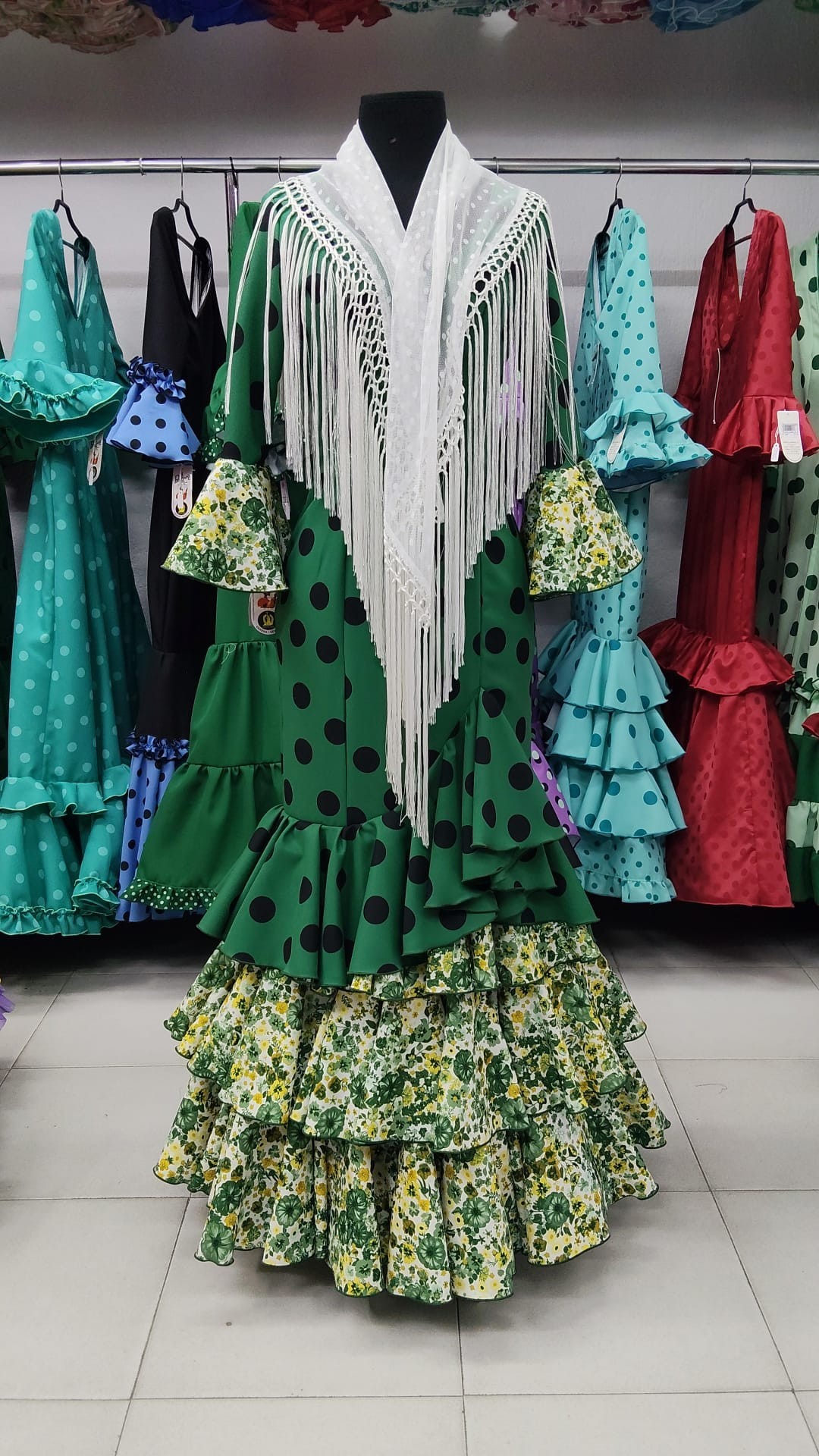 TRAJE CORTADO AL TALLE BAJO, TEJIDO STRECH, LLEVA VOLANTES Y MANGA LARGA AL CODO MAS VOLANTE,MUY COMODO, LLEVA DEBAJO CANCAN PARA REALZAR EL VUELO. ENTREGA INMEDIATA.