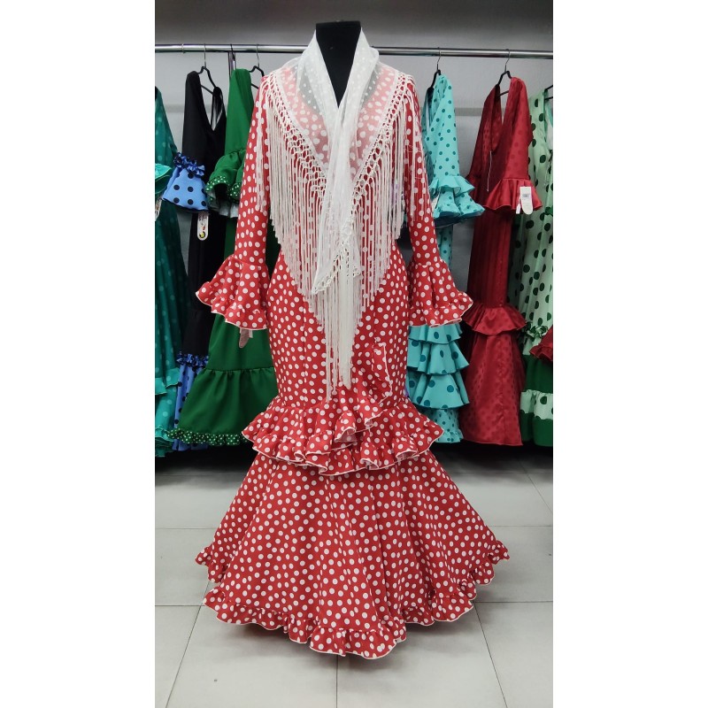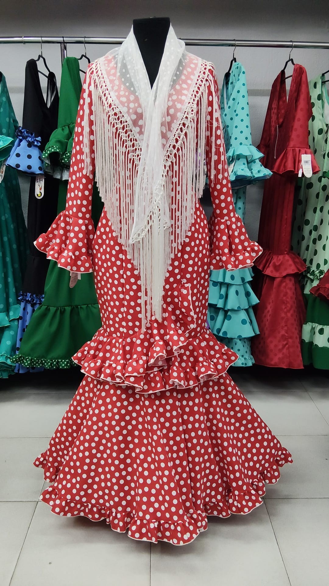 TRAJE CORTADO AL TALLE, TEJIDO STRECH ESCOTE DELANTERO DE HOJA Y EL TRESERO REDONDO A MEDIA ESPALDA, DEBAJO LLEVA CANCAN PARA REALZR EL VUELO, MUY COMODO Y DE POCO PESO. ENTREGA INMEDIATA
