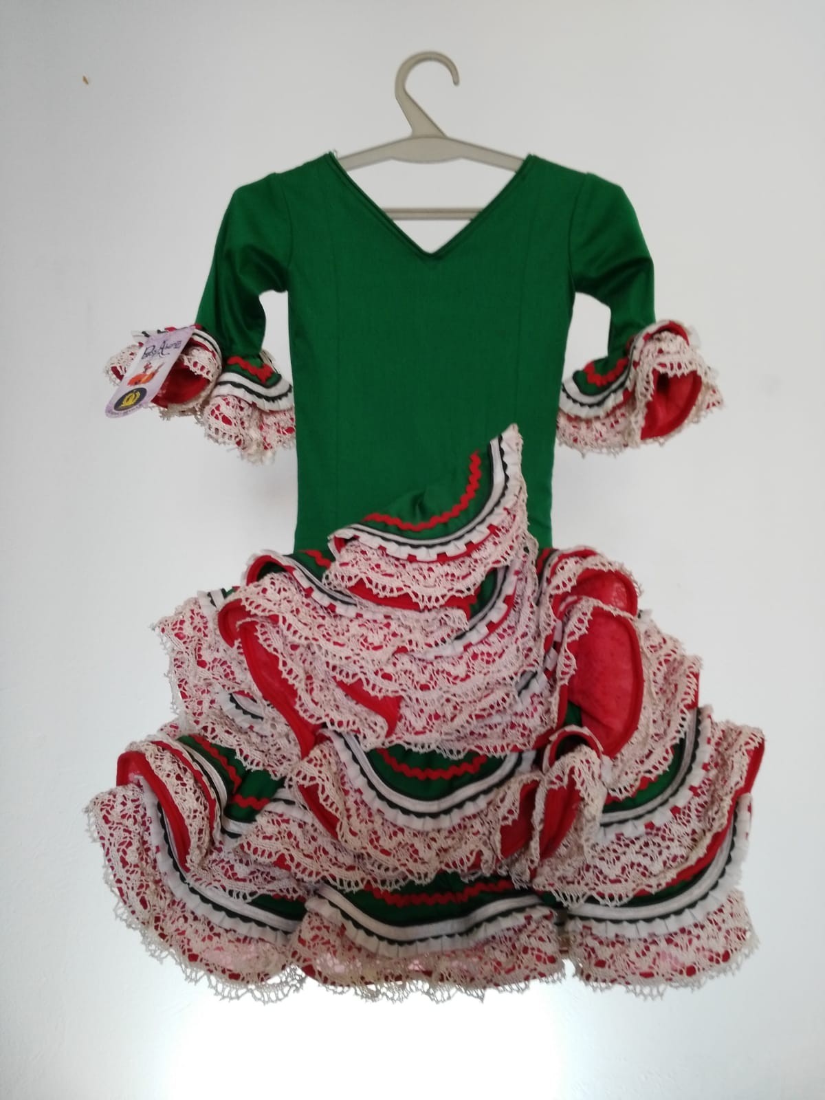 VERONICA NIÑA 3, DEFENSA EN COSTURAS INTERIORES, VARIOS TIPOS DE ADORNOS, COMO ENCAJES Y PLIZADOS,