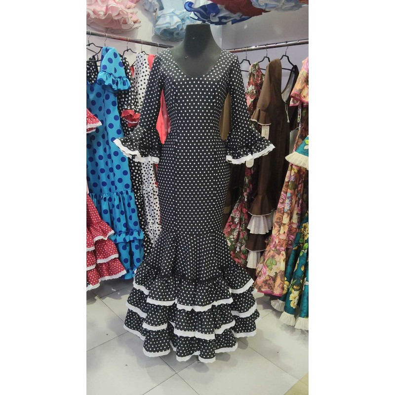 TRAJE CORTADO AL TALLE, TEJIDO STRECH, 3 VOLNTES ADORNADOS CON TIRA BORDADA, CON ENAGUA Y VOLANTE DE CANCAN Y BOLSILLO, SIN FORRAR , MUY COMODO